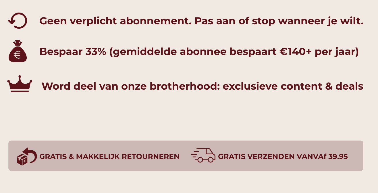 Wij zijn trots op onze kwaliteit en onze focus op masculine engergy — iets wat we niet van anderen kunnen zeggen.